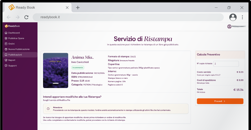 Distribuzione: dall'inserimento in piattaforma le opere cartacee saranno disponibili all'acquisto